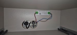 Dankzij de voorzien uitsparingen in de driver kon deze op de achterwand van een kast worden gemonteerd zodat hij uit het zicht hangt, doch makkelijk bereikbaar indien nodig!