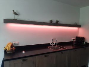 Door dit zwarte inbouw led profiel kunt u ledstrips op een prachtige manier verwerken in uw interieur. U kunt het inbouw profiel bijvoorbeeld in de muur of in een meubelstuk monteren. U heeft de keuze uit een zwarte of semi-transparante afdekkap. Het voordeel van de afdekkap is dat u deze eenvoudig in het profiel kunt klikken. Hierdoor is het geen probleem om het led profiel op een lastige plaats te monteren, aangezien u de afdekkap er niet in hoeft te schuiven. De hoogte van dit inbouw profiel is 10 mm en de breedte is 23 mm. De hoogte van dit profiel zorgt ervoor dat er een egale lichtlijn wordt getoond, zonder zichtbare leds. Hierdoor past nagenoeg iedere ledstrip in dit profiel. Het profiel zorgt ook voor een goede warmteafvoer van de ledstrip die in het zwarte profiel zit. Deze complete set bestaat naast het zwarte profiel uit eindkapjes, bevestigingsclips en een kunststof afdekkap.