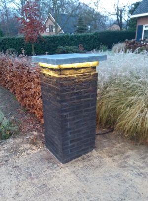 Net profiel, gemakkelijk te verwerken. Het zagen van de afdekkapjes was wel iets lastiger (de eerste keer sprong er een hoekje af. Daarna alles even ingeklemd bij het zagen en geen problemen meer gehad) Heb de profielen met daarin weer led strips, geplaatst in een groef onder de pilaar petten. De voeding zit in de pilaren verwerkt. Het schakelen gebeurt via een Hue compatible schakelaar (via een andere site gekocht).