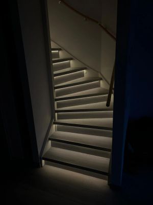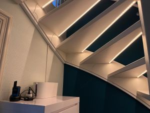 De treden van een trap verlichten met led strips is erg mooi, maar ook een behoorlijk technische klus. Daarom hebben we trapverlichting led strips ontwikkeld met een bijzonder handig aansluitsysteem. Erg stijlvol en eenvoudig qua montage.