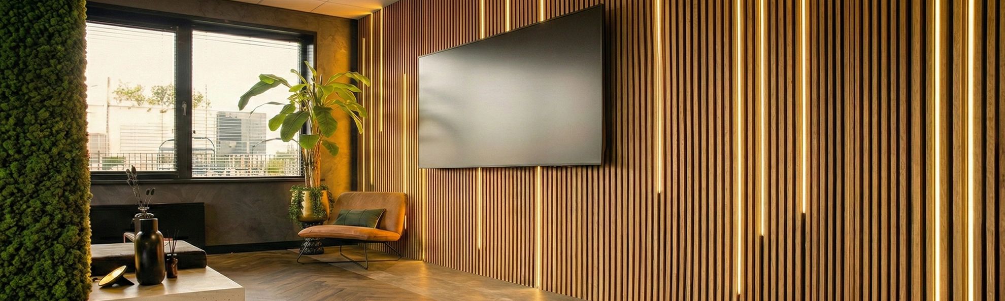 - Verlichting achter houten wandpanelen of lattenwanden