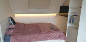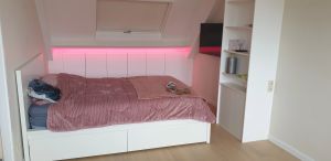 De ledstrips kunt u niet plooien in een hoek van 90 graden. U kunt de ledstrip op de desbetreffende knippunten knippen en een koppelstuk tussen plaatsen om zo toch een hoek van 90 graden te creëren.