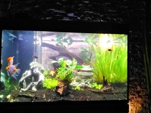 Zeer mooie witte lichtkleuren. Is mbv de rvs klemmetjes aangebracht aan de buitenkant van het aquarium, om de muur erachter goed te verlichten. Goed regelbare kleuren en licht_sterkte.