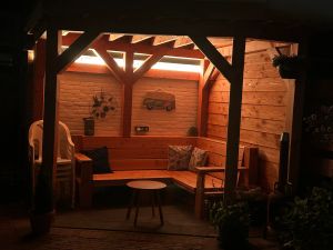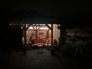 Geeft ook veel licht, bovenin de overkapping verlicht ie de halve tuin.