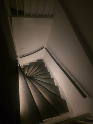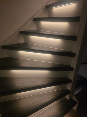 Ik kan de verlichting niet achter de trap plaatsen. Hierdoor zullen de draden onder de nieuwe overzettreden en achter de stootborden geplaatst moeten waren.