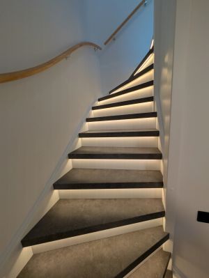 Verlicht uw trap op een unieke manier met onze complete set voor dynamische trapverlichting, bestaande uit maximaal 16 COB ledstrips in warm of helder wit, elk 130 cm lang. Deze strips zijn uitgerust met 480 leds per meter, waardoor een ononderbroken lichtlijn ontstaat zonder individueel zichtbare leds. Met deze set verandert u uw trap moeiteloos in een opvallend element van uw huis, met keuze uit 12 lichtprogramma's.