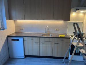 De ledstrip bestelt en op m’n gemak de profielen gemonteerd. Strip erin en aangesloten. (Piece of cake).